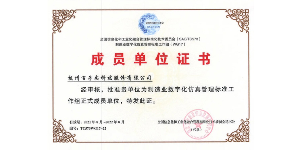 近日,经全国信息和工业融合管理标准化技术委员会认定,百子尖正式成为制造业数字化仿真管理标准工作组正式成员单位!
