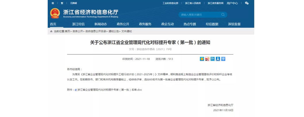 为落实《浙江省企业管理现代化对标提升工程行动计划(2021-2025年)》(浙委办发〔2021〕23号)文件精神,引导管理咨询行业规范化发展,培养认定一批精理论、懂实战的“浙江管理咨询名师”,顺利推进制造业企业管理星级评价和标杆企业考核认定工作,浙江省经济和信息化厅评选出了60位2021年度浙江省企业管理现代化对标提升专家库专家(第一批)。杭州百子尖股份有限公司董事长葛铭入选为专家库专家。