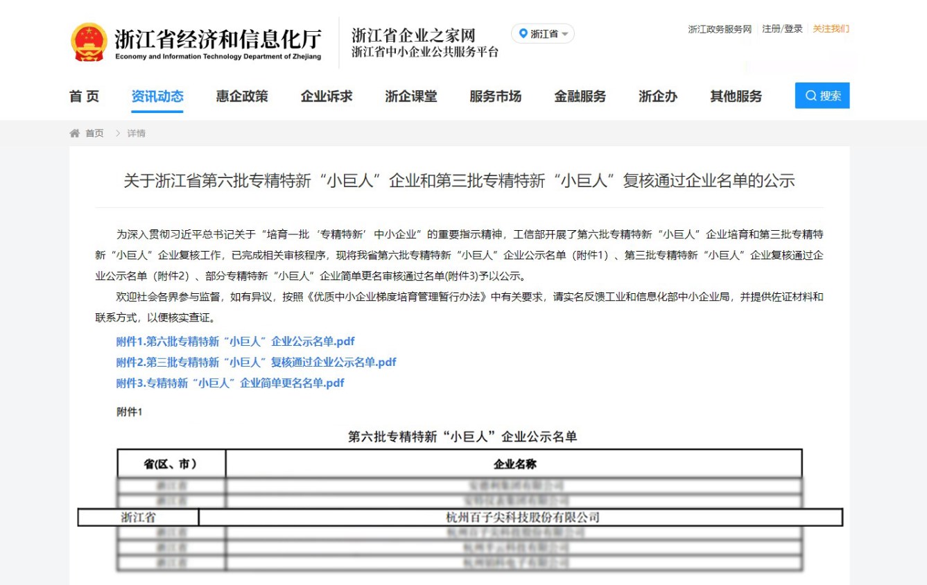 近日,2024年第六批国家级专精特新“小巨人”企业名单公布,杭州百子尖科技股份有限公司荣获国家级专精特新“小巨人”企业称号。