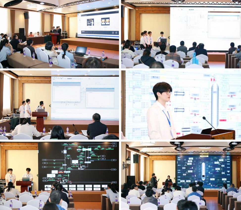 决赛现场,参赛队伍围绕“虚拟工厂”稳态建模、工艺优化、动态建模、组态和操作验证等核心任务展开比拼。在演说答辩环节,选手们通过PPT全方位展示作品设计思路,通过实际操作演示从稳态建模精度到节能降本方案到动态操作,从跨学科协作到创新突破,充分展现了新一代大学生的专业素养与数字化能力。