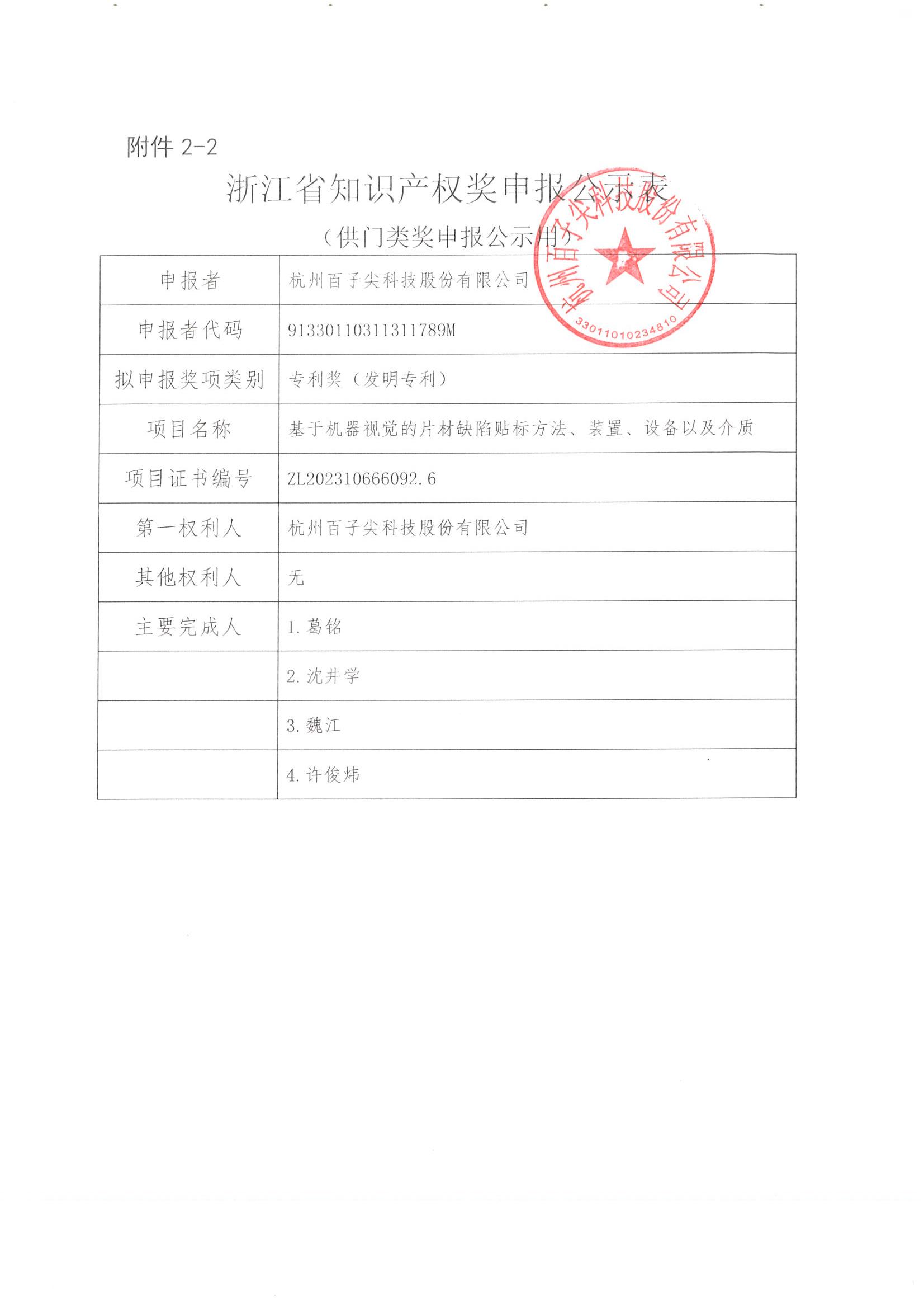 浙江省知识产权奖申报公示