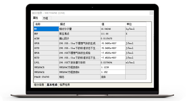 5000+物性数据库及丰富热力学物性方法;